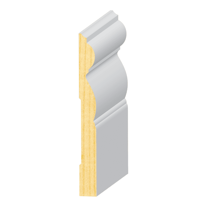 Primed Finger-Joint Pine Baseboards provide a great transition between the floor and walls of your home. Finger-Joint Pine works great in high traffic areas and can be used in many creative ways besides just a floor board. The material is very durable and the perfect choice for anyone looking to upgrade from MDF Mouldings. Comes pre-primed and ready to paint in many different profiles.