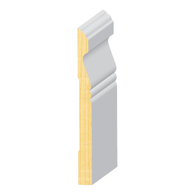 Primed Finger-Joint Pine Baseboards provide a great transition between the floor and walls of your home. Finger-Joint Pine works great in high traffic areas and can be used in many creative ways besides just a floor board. The material is very durable and the perfect choice for anyone looking to upgrade from MDF Mouldings. Comes pre-primed and ready to paint in many different profiles.
