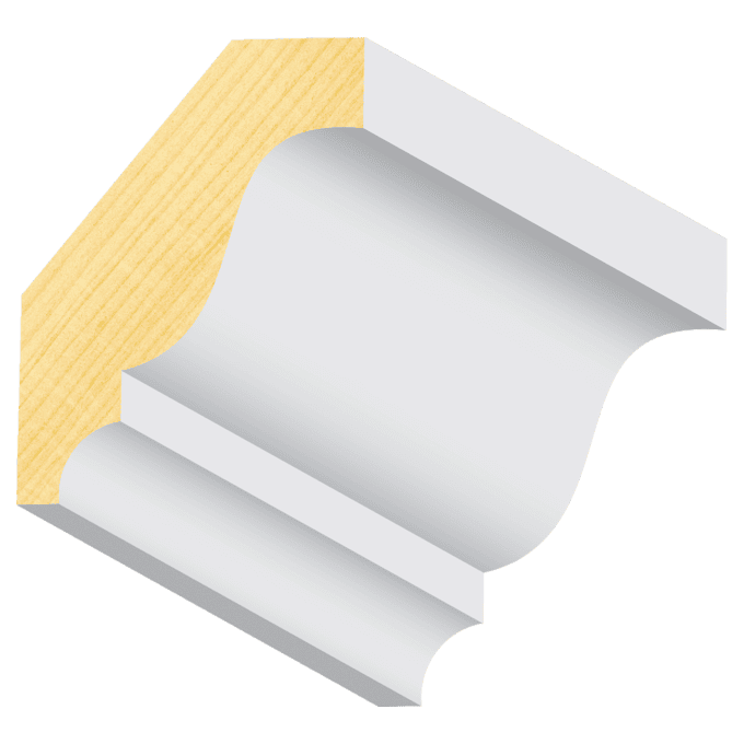 Primed Finger-Joint Pine Crown Moulding is an excellent transition between the walls of your home and ceiling. Crown moulding is installed at an angle so it touches both wall and ceiling at the same time. Primed Finger-Joint Pine is very durable material, a cost effective real wood, and comes primed ready to paint!